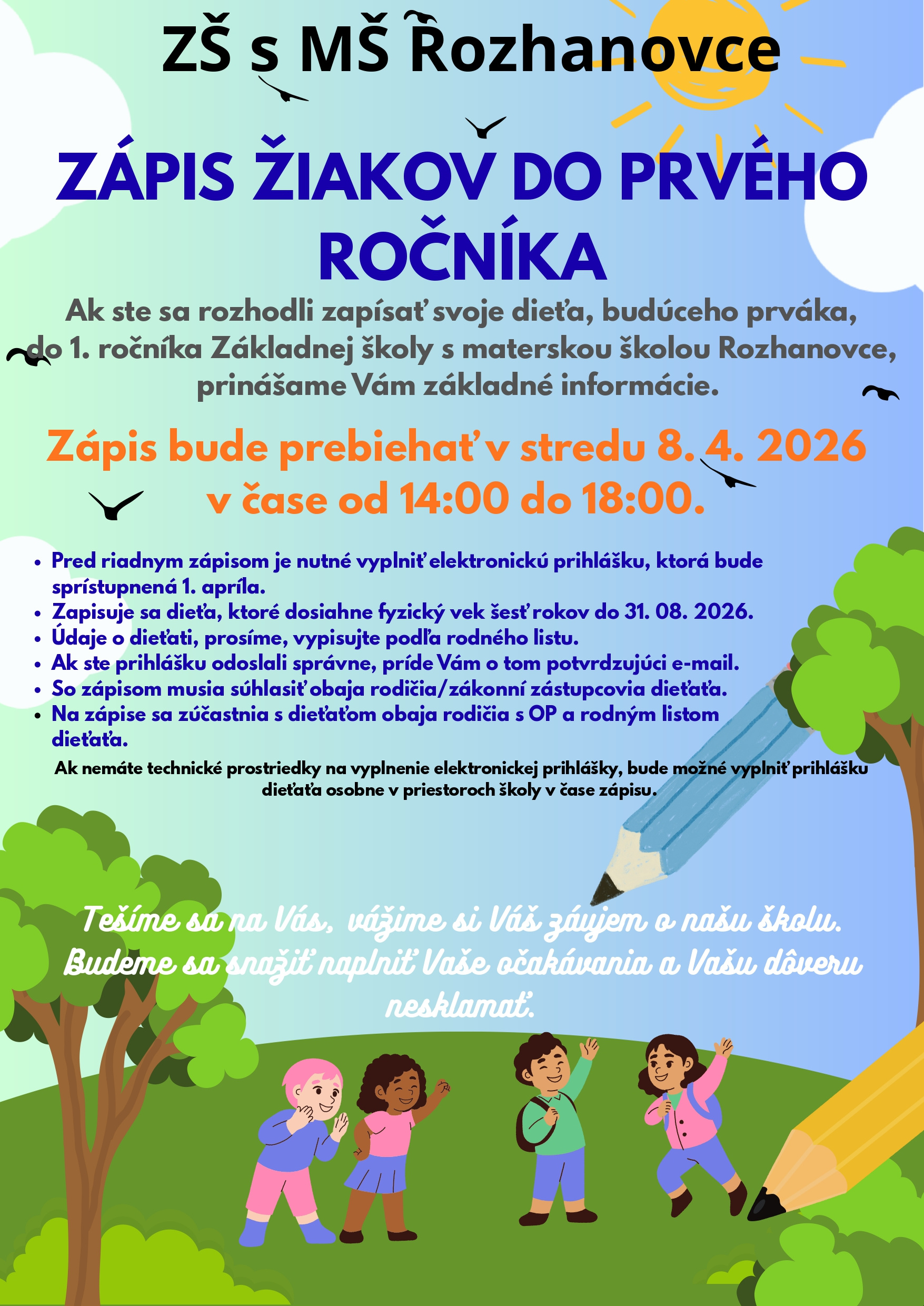 DOD a Zápis do 1. ročníka ZŠ s MŠ RozhanovceOznam o zápise detí do MŠ Čižatice
